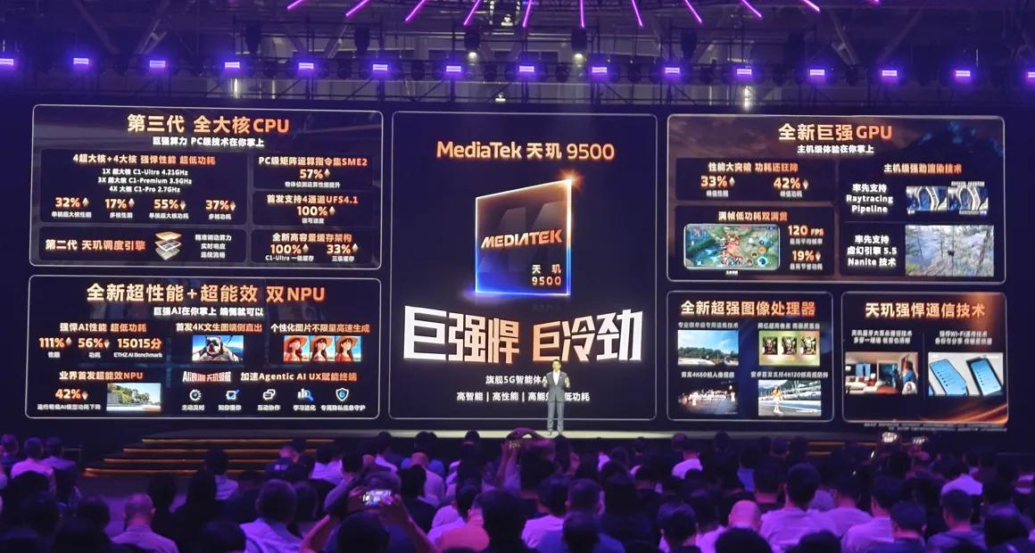 联发科资深副总经理徐敬全表示:“天玑 9500 不仅是 MediaTek 迄今为止最强大的旗舰移动芯片,更驱动着AI加速发展和普及。天玑 9500 不仅拥有澎湃算力、与生俱来的高能效,更透过先进的AI技术重构超乎想象的创新体验。伴随搭载天玑9500 的终端陆续上市,全球消费者将能够切身体验到更智能、更高效、更流畅的使用体验,尽享科技带来的便捷与乐趣。”