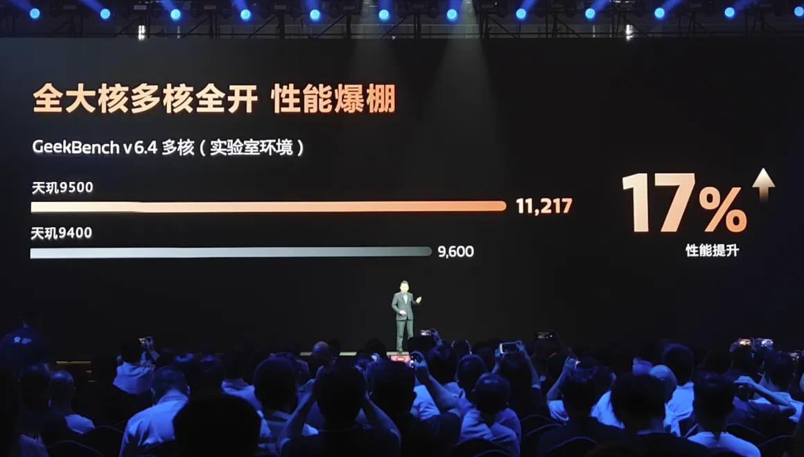 在多核性能方面,天玑9500得分也达到了11217分,相比上代天玑9400的(约9600分)再度提升了超过17%,并且超越了苹果A19 Pro(多核得分11054分)。
