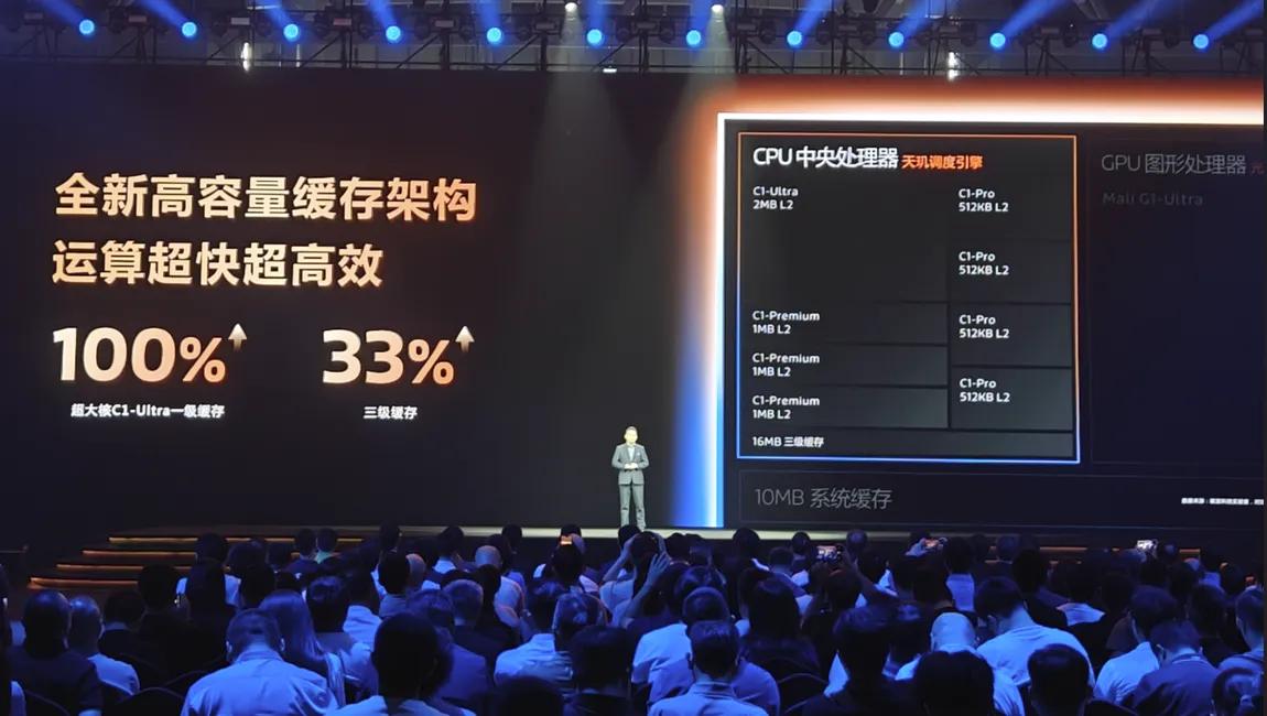 而为了提升CPU的能效表现,天玑9500所搭载的C-1 Ultra的一级缓存容量提升了100%,整个CPU的三级缓存提升了33%至16MB,系统缓存与上一代一致为10MB。CPU的缓存容量越大,传输速率越快,也意味着可以降低数据搬运的频率和所耗费的时间,从而可以降低功耗。