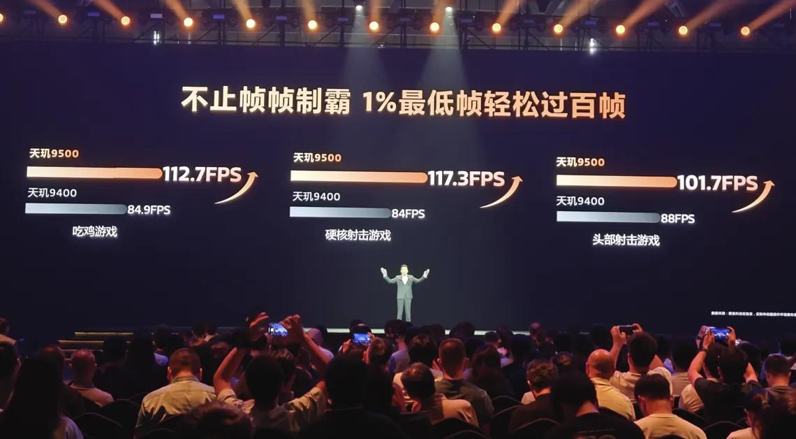 即便是看1% low帧性能,天玑9500在各类游戏当中也能轻松突破百帧。