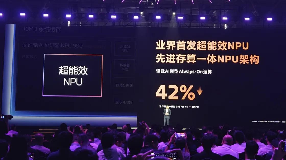 天玑9500的超能效 NPU 则采用了先进的存算一体架构,运行功耗显著降低助力实现AI 模型常驻运行,以更先进的主动式 AI 进一步提升终端用户体验,相较一般的NPU功耗可以降低42%。