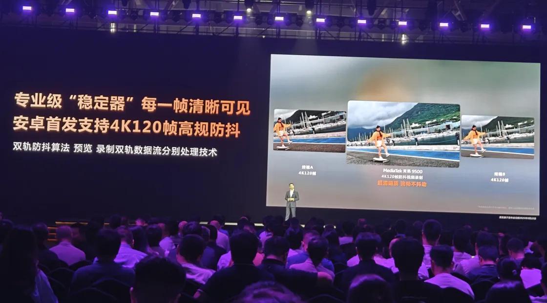 此外,基于天玑9500的高能效 ISP,还支持在 4K 120 帧视频录制上叠加双轨防抖算法,实现画面超稳定的高规格视频。