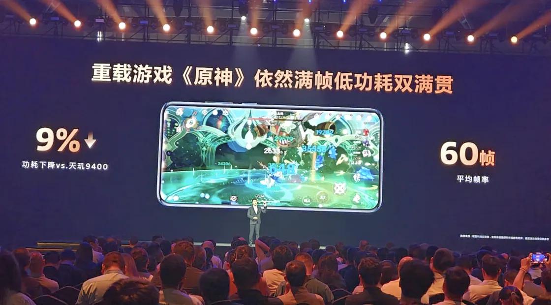 即使是应对《原神》这样的重载游戏,天玑9500也依然能60帧满帧运行,并且功耗相比上代天玑9400还可降低9%。