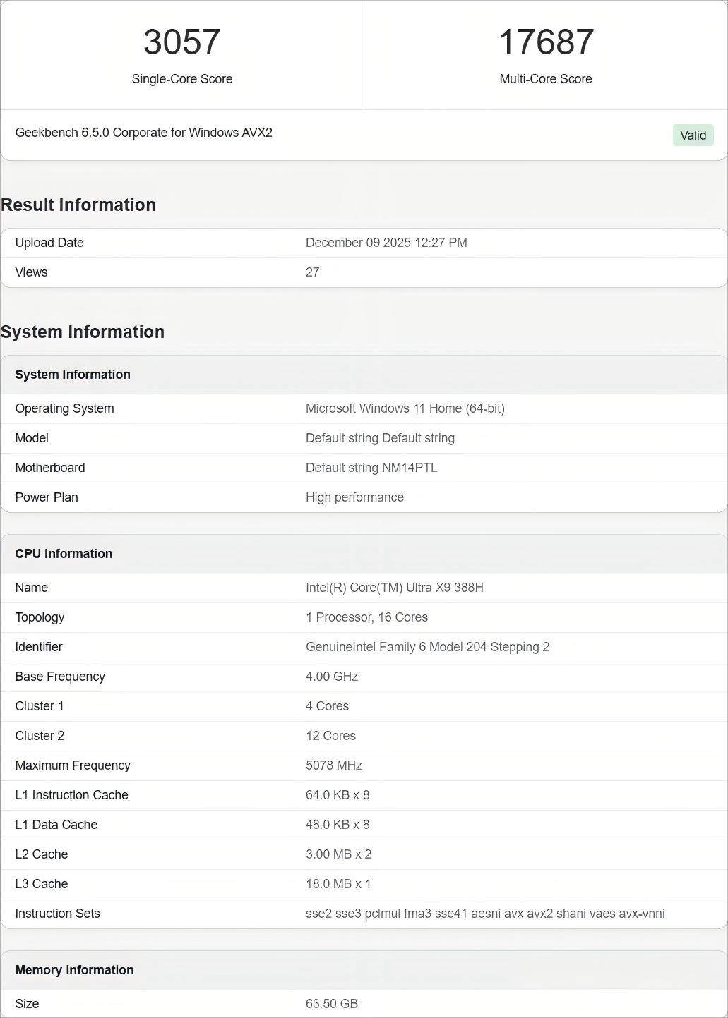 另外,Geekbench页面信息显示,Core Ultra X9 388H 睿频可以提升到5.1 GHz。